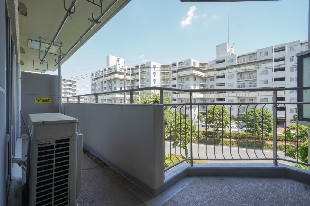 L字型のバルコニーにイスや机も置けるのでぜひ楽しんでいただきたいです。