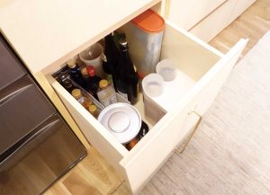 引き出しには重量用スライドレール採用、STAUBも収納できます