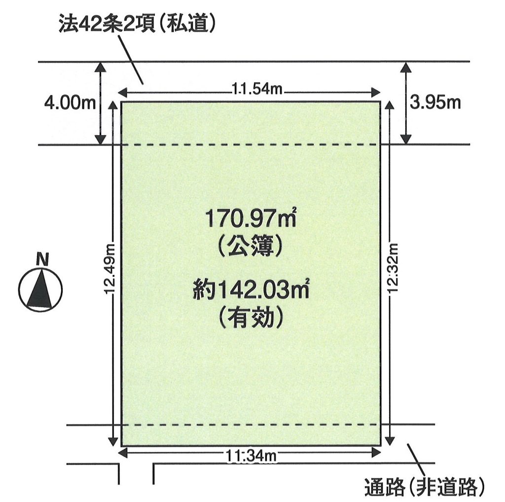 □土地面積/ 170.97㎡(公簿) 約142.03㎡(有効宅地面積)