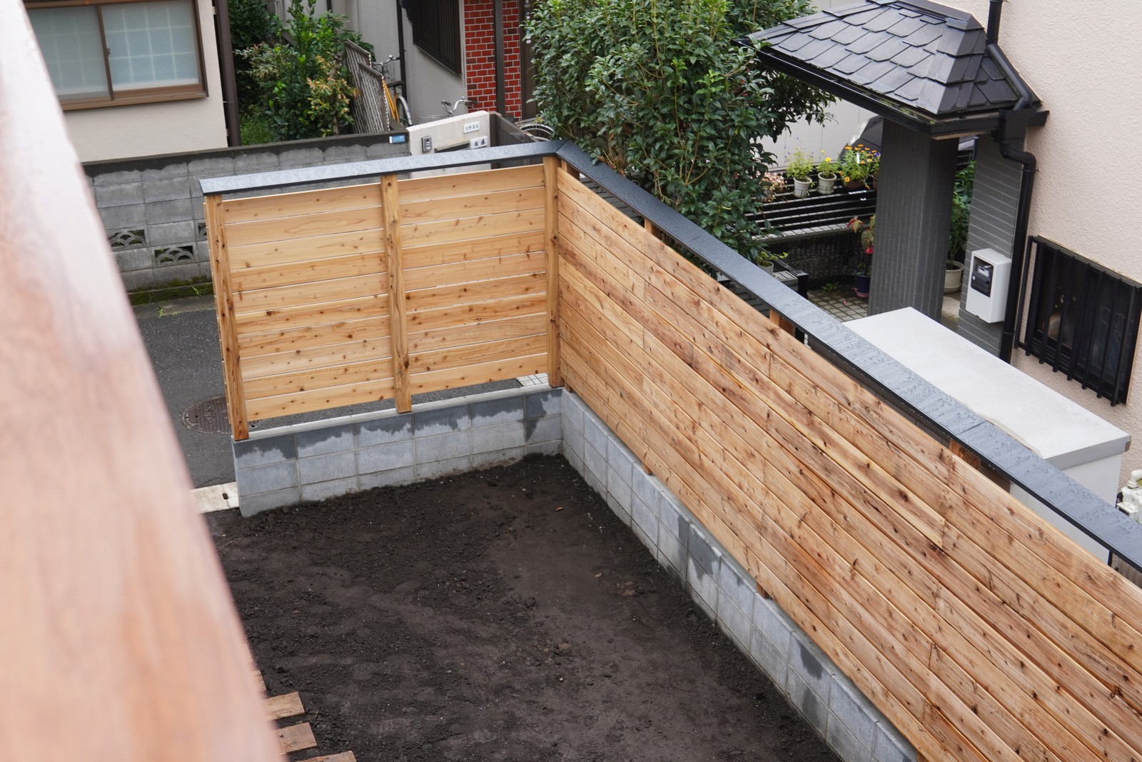 南側道路は車通りがほぼなく、用水路の木々や街路樹が望める空間となっています。